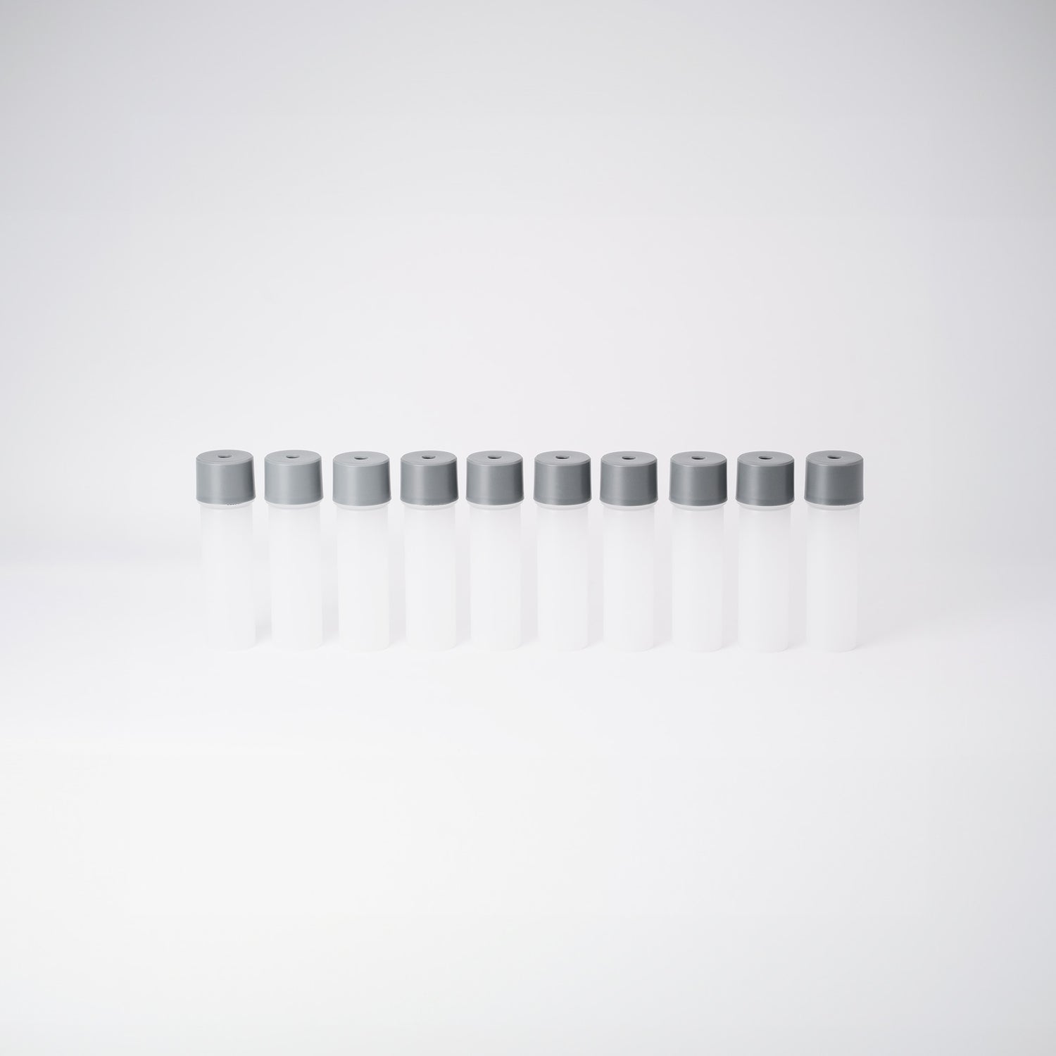 - Set of 10 or 12 food-grade polypropylene bean cellars and caps. Integrated seals and valves.