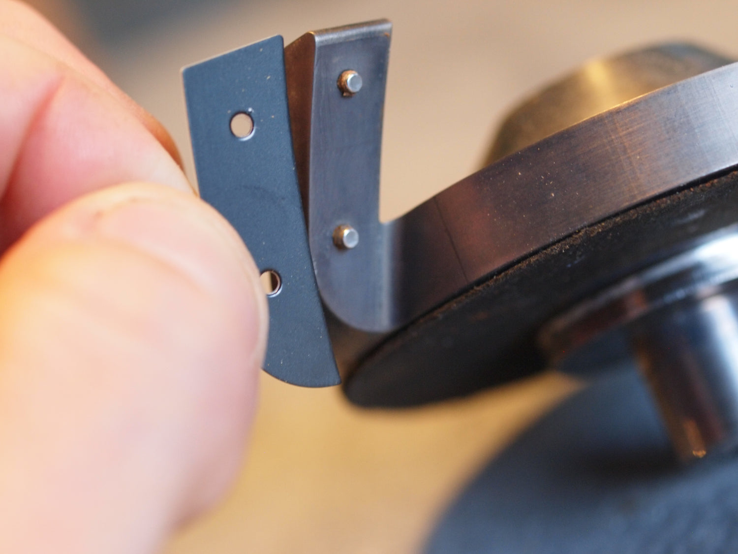 Spare wiper blades for the EG-1 grinder. These are custom die-cut with the double-sided adhesive offset from the edge so that it will never come into contact with the coffee. The two alignment holes make replacement a breeze. Replace each set every month or so as needed in a cafe setting (almost never needed for home use).