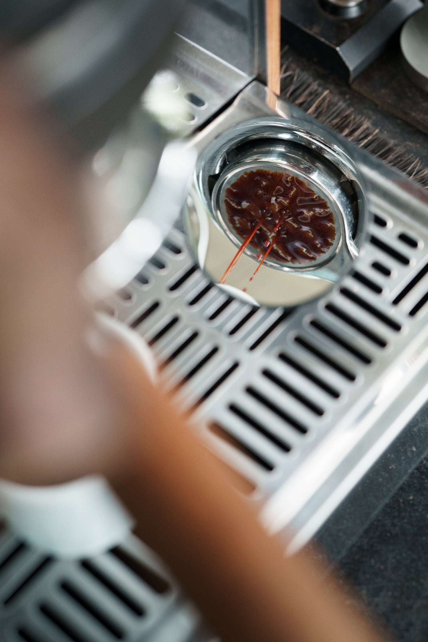 We can’t help but bend down and look up at the perforations of the portafilter for those moments when the first drops start to converge and drip into the cup. The Looking Glass was designed to give us an easy way to do so. Fully adjustable, with a removable, vacuum-coated, oleophobic mirror.