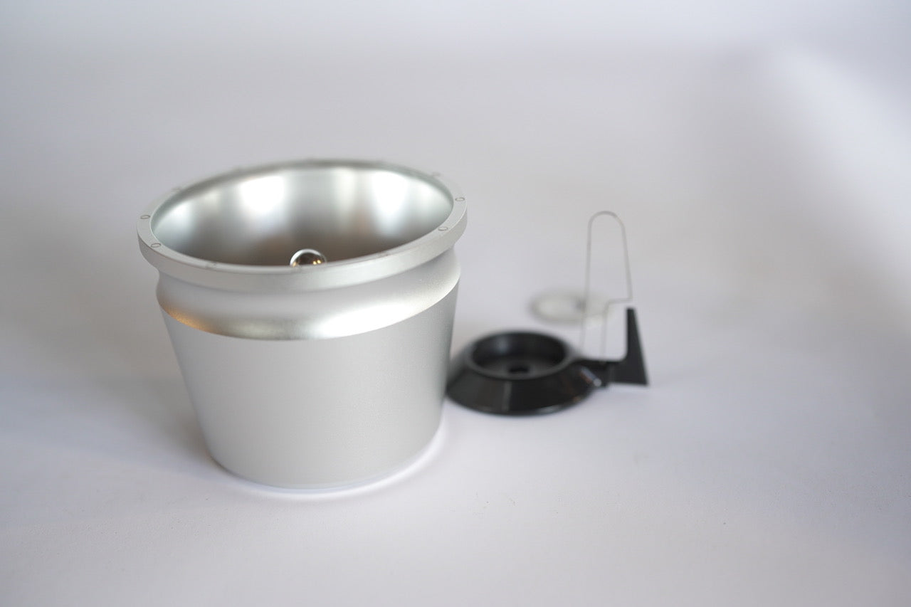 Constructed from anodized aluminum, all interior surfaces are extremely low-energy and repel coffee grounds better than any other materials we tested, all without using chemical or teflon coatings.