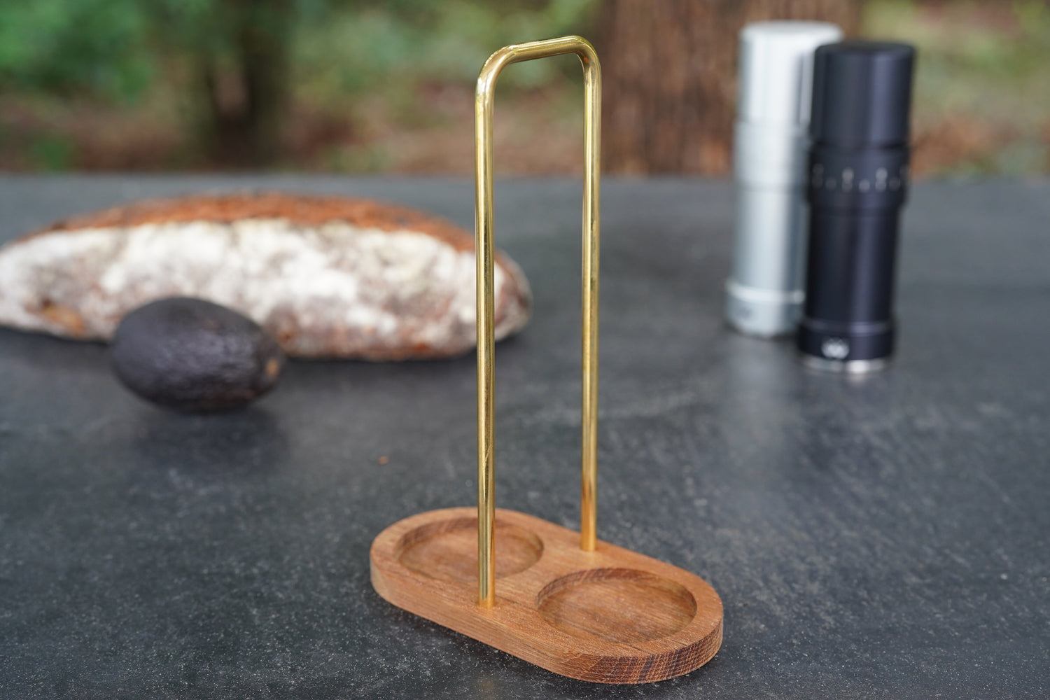 Made of solid teak, a solid brass handle, and assembled with stainless retaining screws, the Moulin Caddy follows the design language of our Bean Cellar Caddy to help unify the elegant materials selection on your countertop. One spot for Moulin Salt, one spot for Moulin Pepper, and no more grounds on your table.