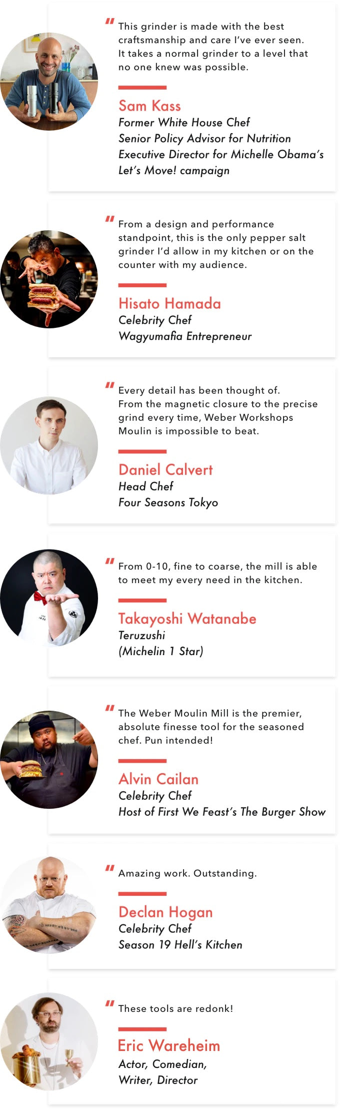 We know some amazing chefs around the world. See what they have to say about the Moulin after using in their kitchens.
