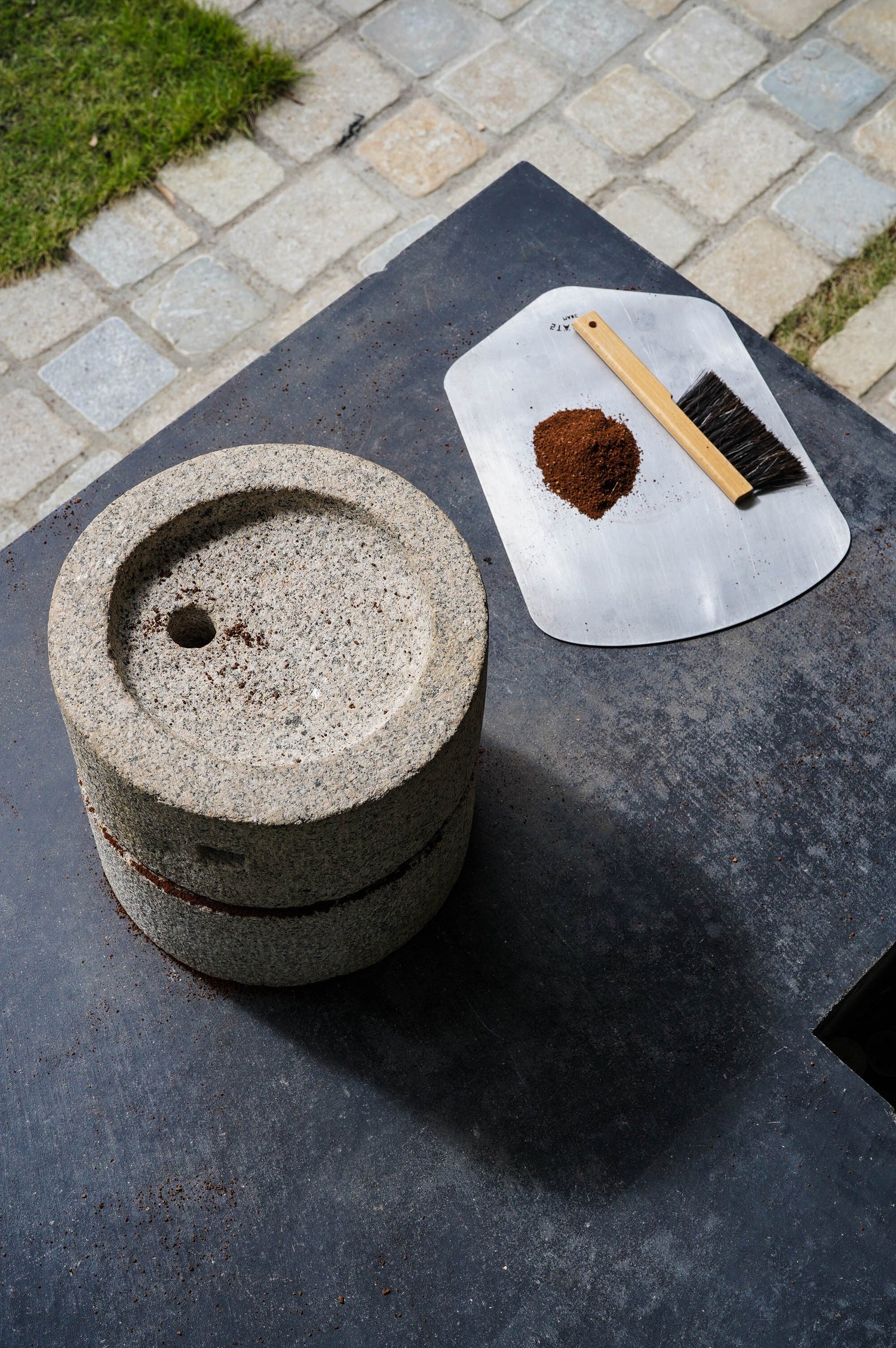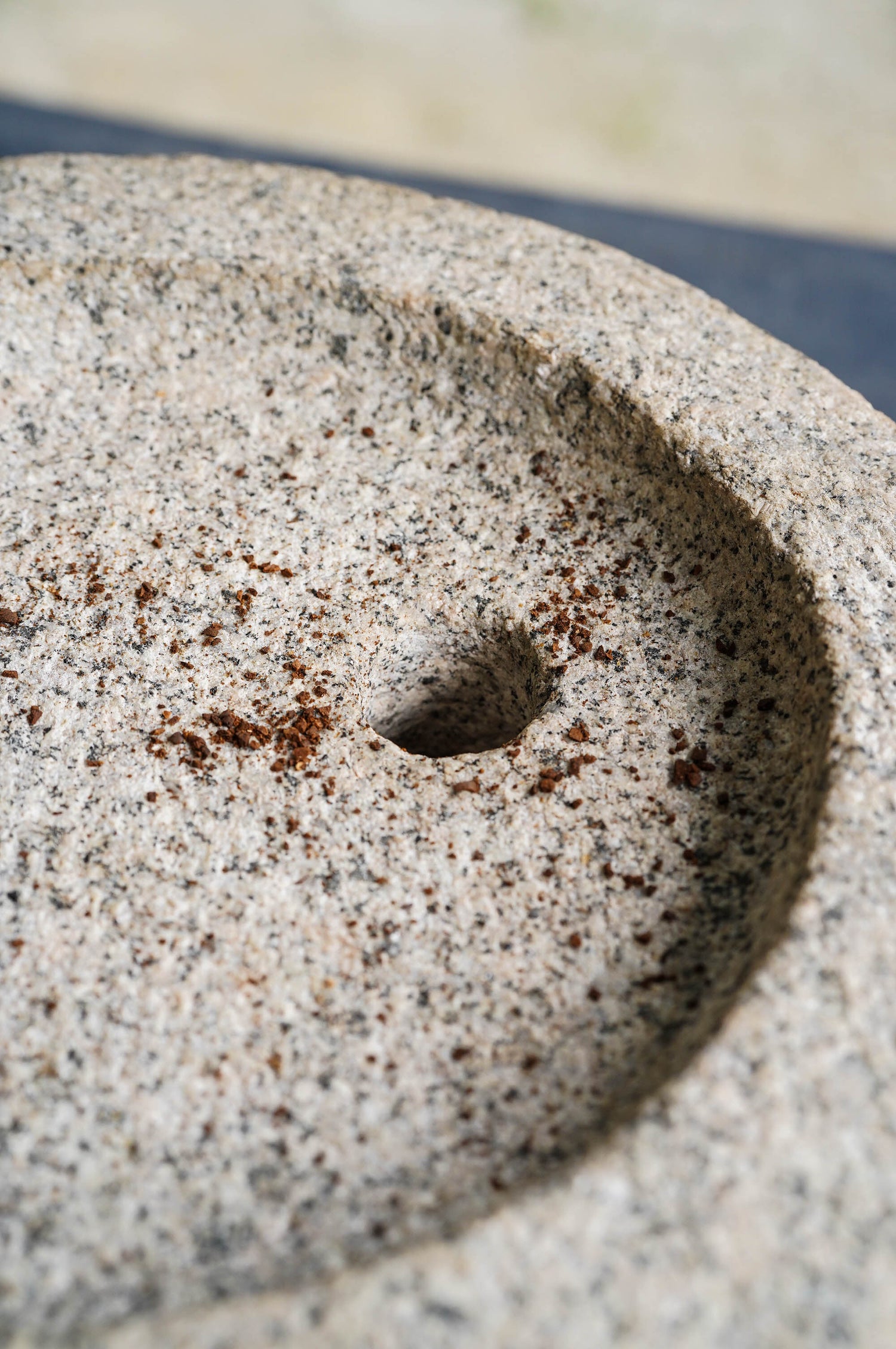 The SG-1 is a fully functional and perfectly preserved example of a rotary quern grinding millstone from the Yayoi (300BC) through Meiji (1912) periods in Japan. While they were primarily used to mill rice into rice flour, their usage widened into various types of grain flour and, today, specialty coffee.