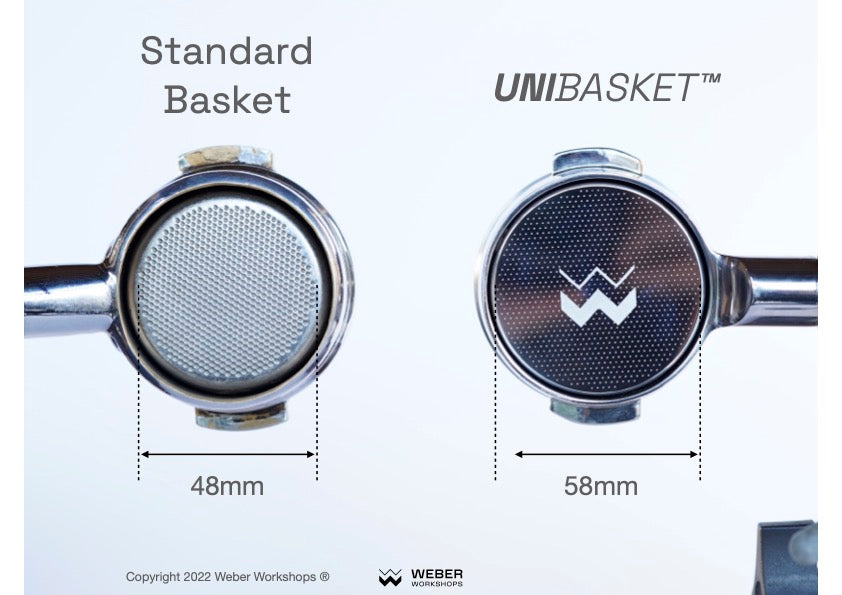 With the Unifilter we created a portafilter revolution. Weber Workshops is extending that concept to the Unibasket®, utilizing the same construction and improvements on extraction that the Unifilter brought, but in a “drop-in” basket form. Now available in 4 basket sizes, including an industry-first whopping 28g megafilter.